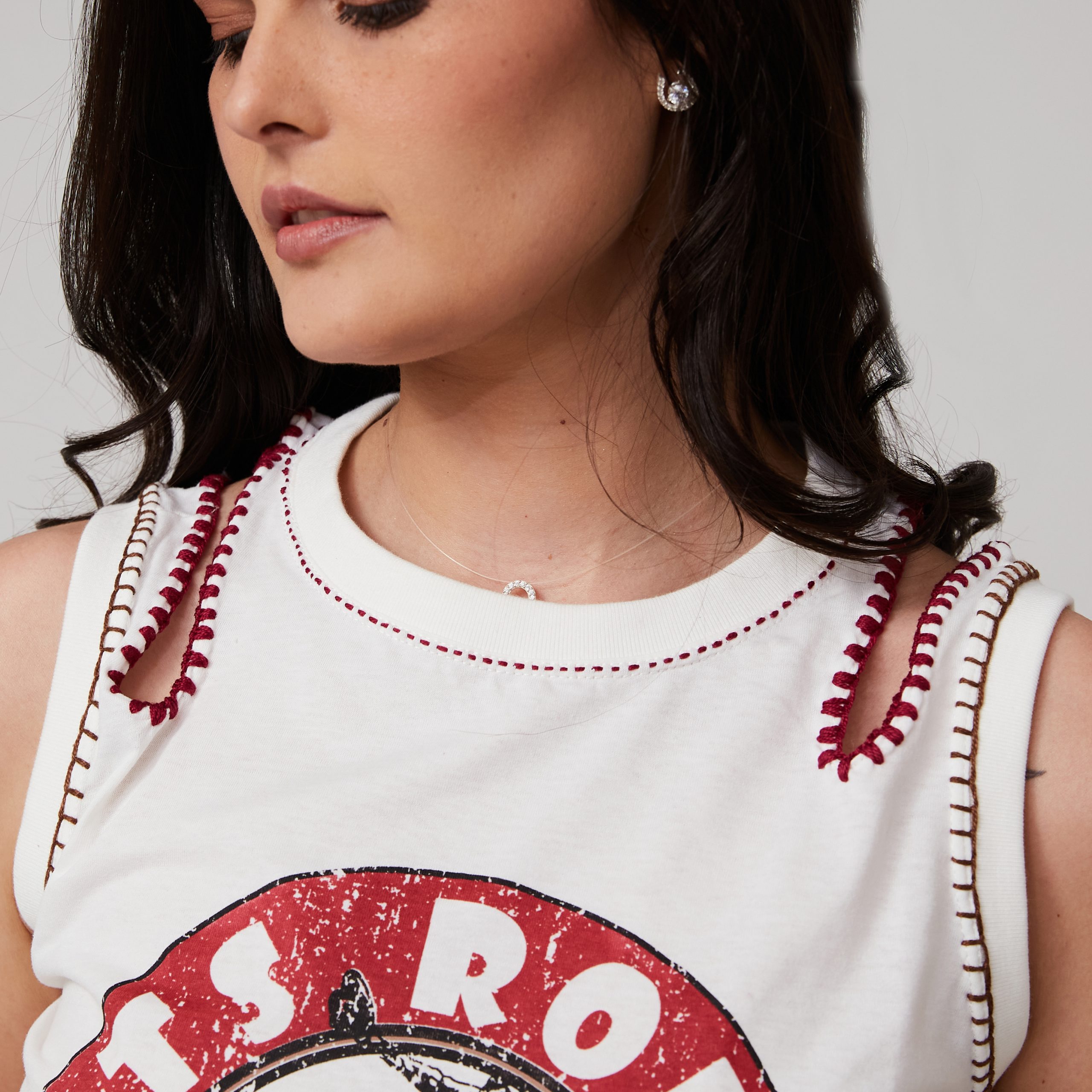 Regata com modelo mais justo, shape slim, decote redondo e detalhe frontal bordado Tecido: 92% algodão + 8% elastano Modelo esta usando o tamanho P.