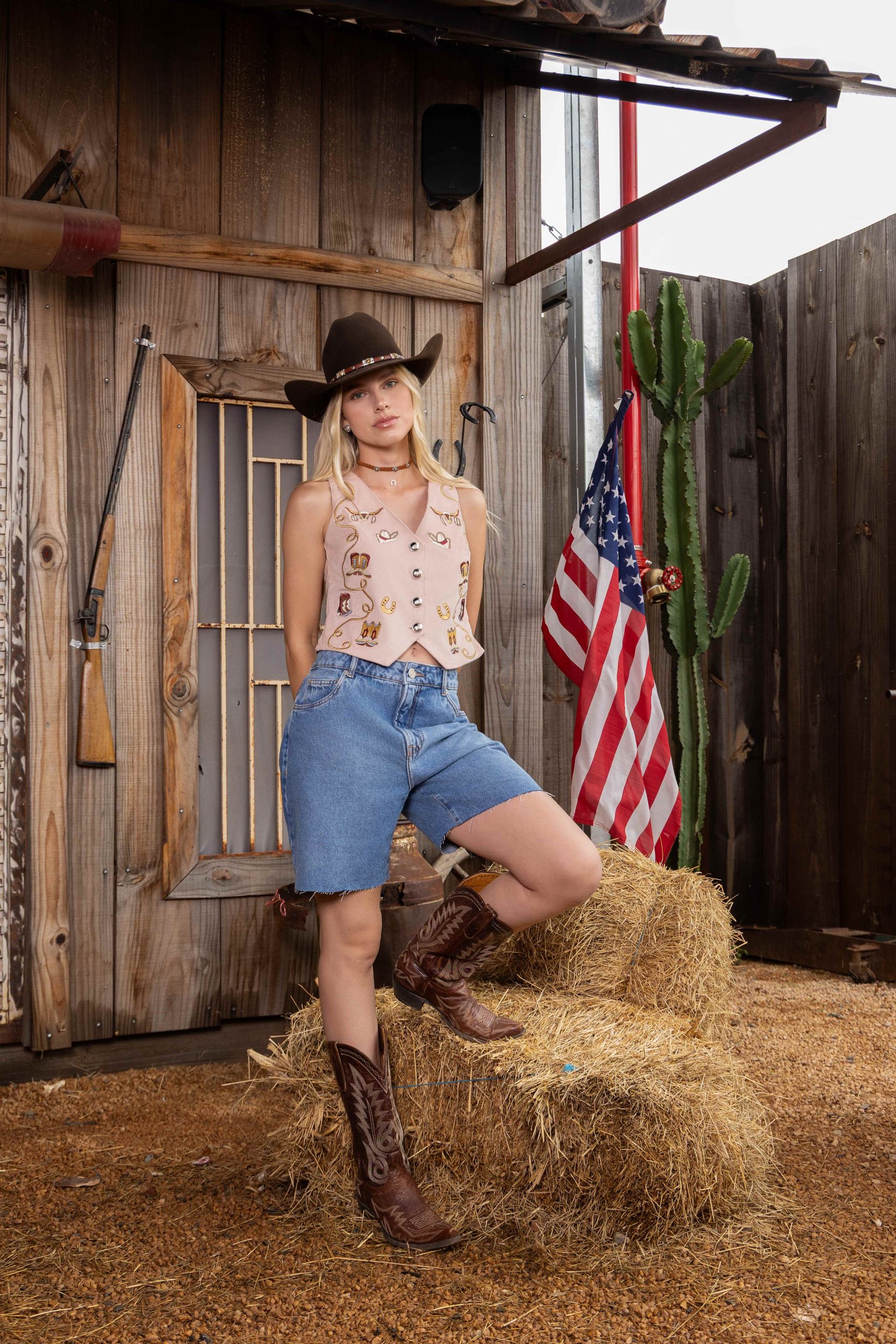 Foto da peça na modelo pode haver uma diferença na tonalidade do jeans por se tratar de uma peça piloto.