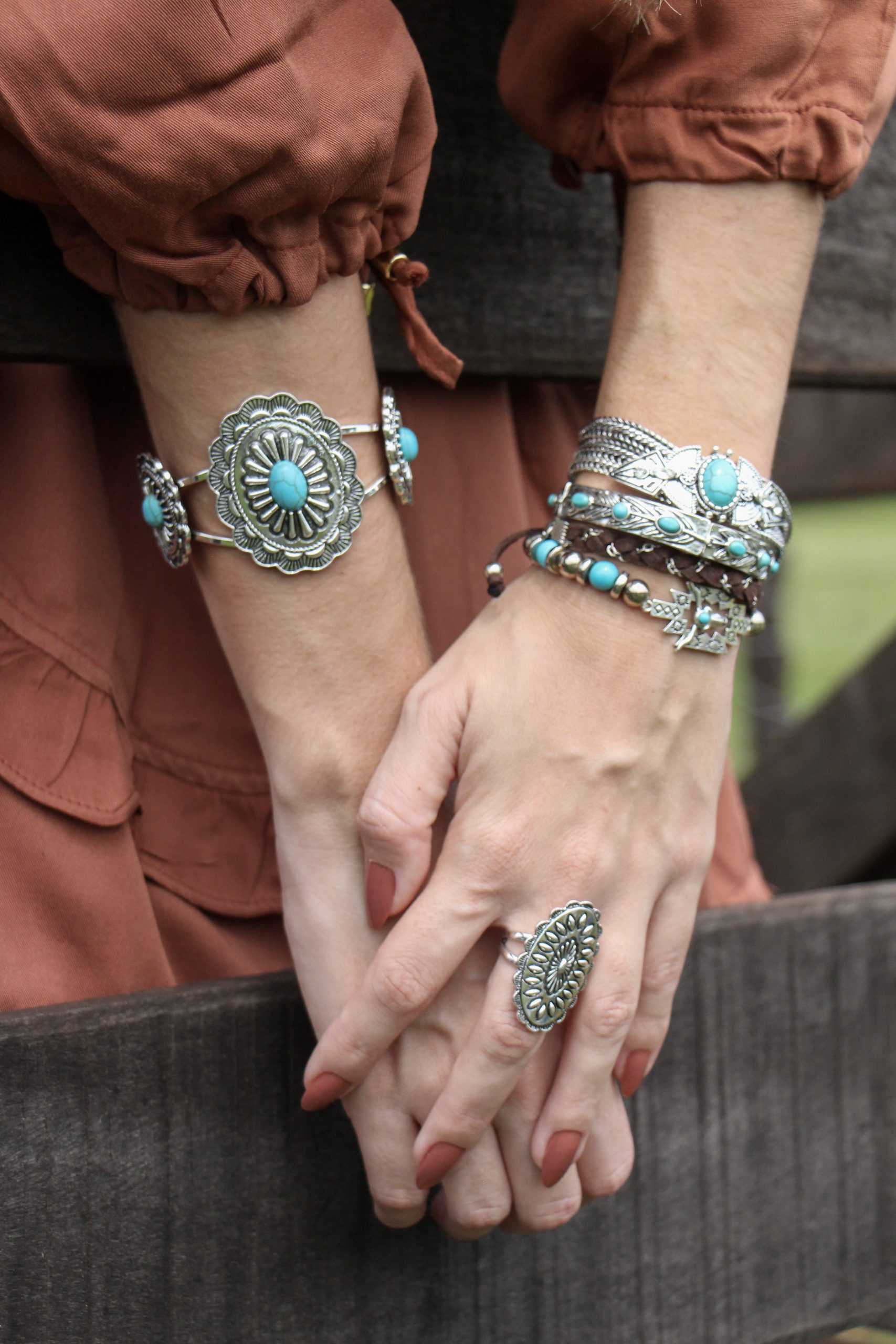 Bracelete prata com detalhe de pedra turquesa