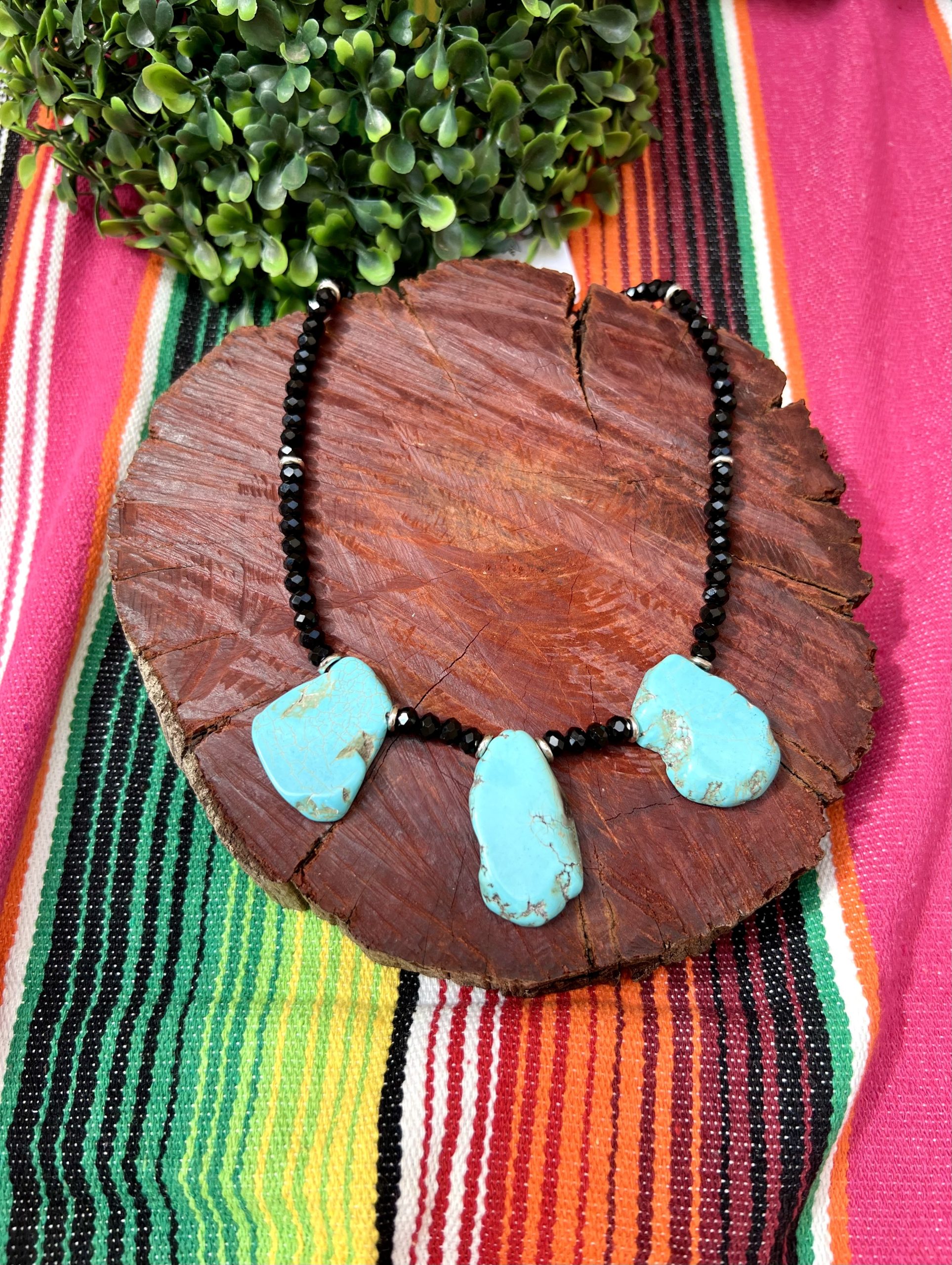 Colar black stone turquoise