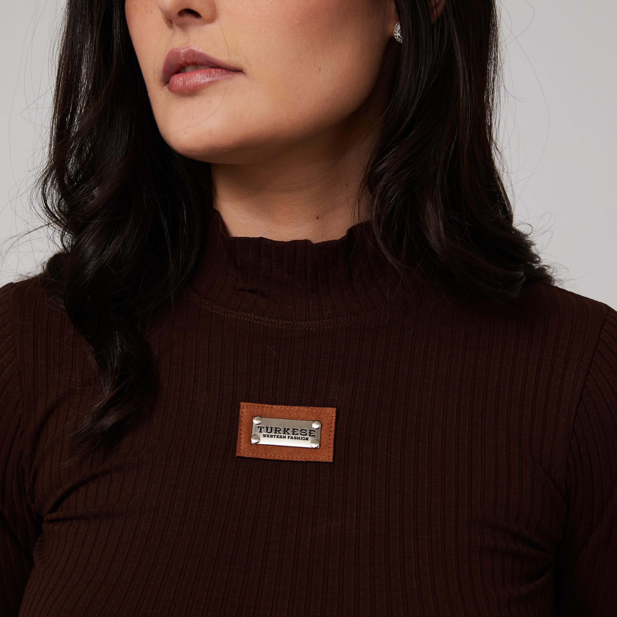 Blusa em malha canelada com gola alta e aplicação de patch com logo marca na parte frontal. Tecido: 92% algodão | 8% elastano Modelo veste…